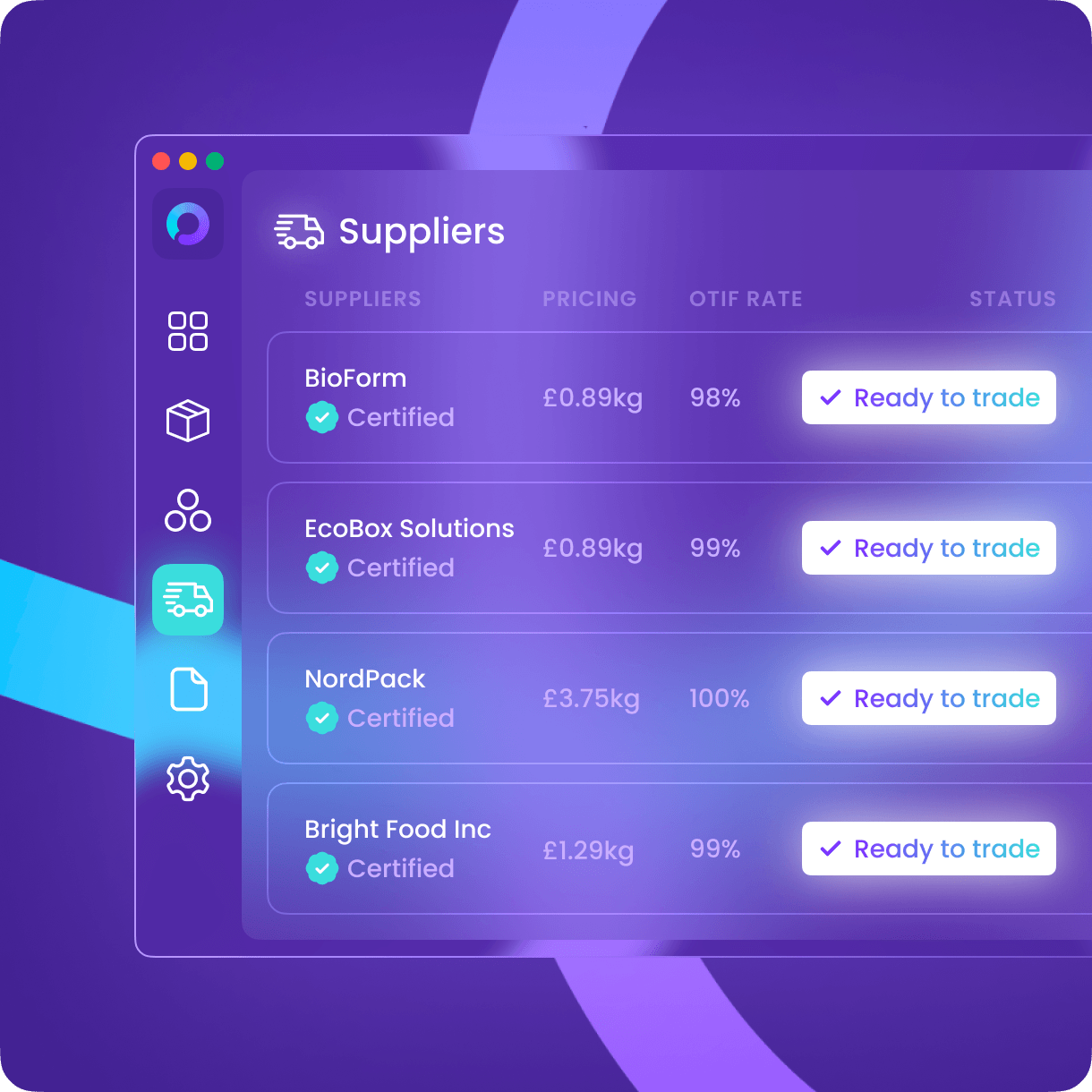 OTIF rates, lead times, and pricing history tracked across every supplier. You see the data. Opply acts on it.